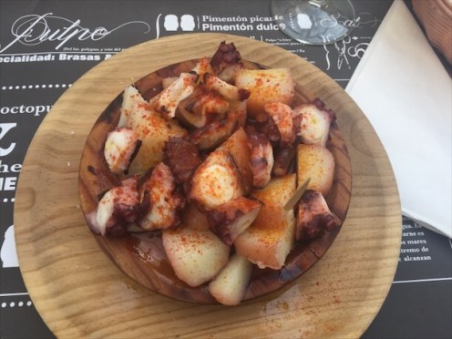 Octopus (called “pulpo” in Spanish) is especially popular in Pontevedra. It’s pretty rich and has a good chew haha. I had it one of my first days here, and honestly thought the plate was apples and grapes at first. Little did I realize that it was potatoes and octopus. A bit wrong, oops.