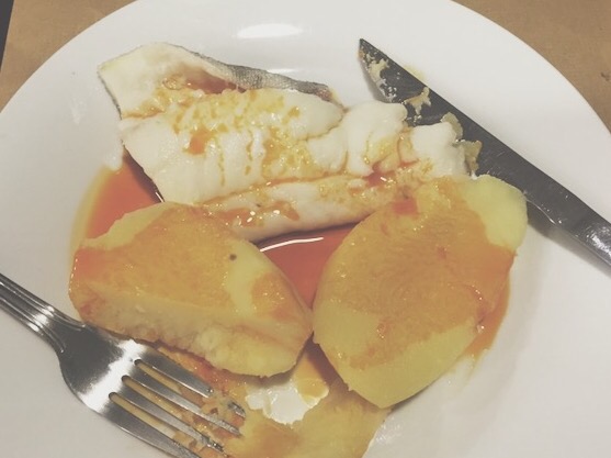Continuing on with seafood… I believe the photo below is of a heron? Don’t remember exactly what kind of fish this is. Also served with potatoes. This kind of a dish seems to be pretty popular here.